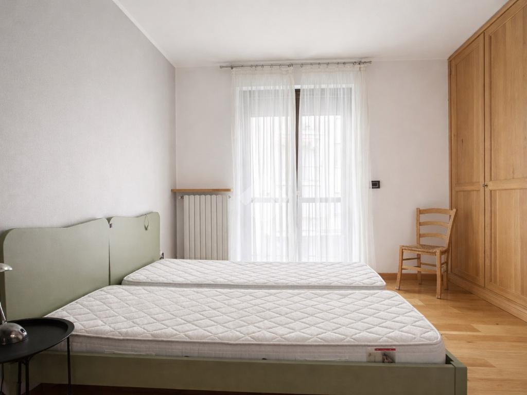 L'immobile offre una disposizione funzionale e moderna, con tre locali ben distribuiti: la zona giorno è composta da un soggiorno luminoso con cucina in ambiente unico; un disimpengo conduce alla zona notte, che comprende due camere da letto spaziose, ideali anche per affitto a stanza; sono presenti inoltre due bagni che offrono praticità e comodità.