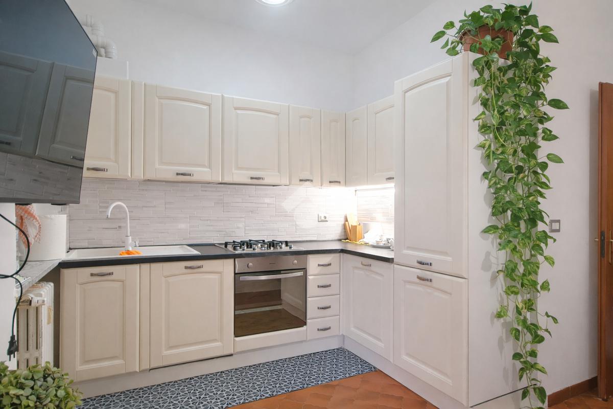 La zona giorno è composta in ambienti separati da una cucina abitabile con accesso diretto al balcone e da un accogliente soggiorno pensato per vivere momenti di relax e convivialità.