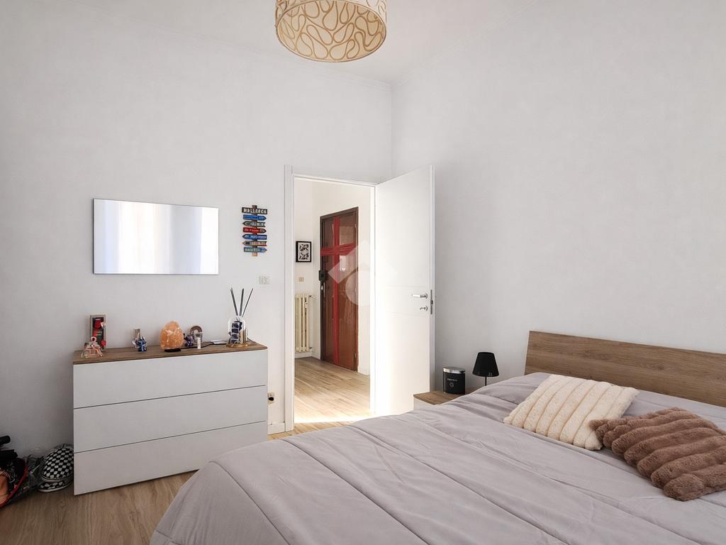 È presente una cucina abitabile con accesso al balcone e al ripostiglio, un salotto luminoso, una spaziosa camera da letto matrimoniale, una cameretta singola e un bagno finestrato.