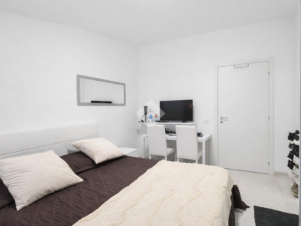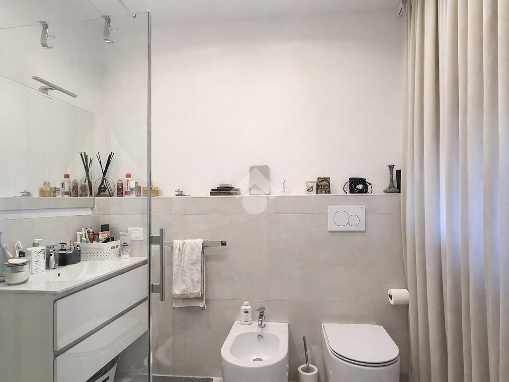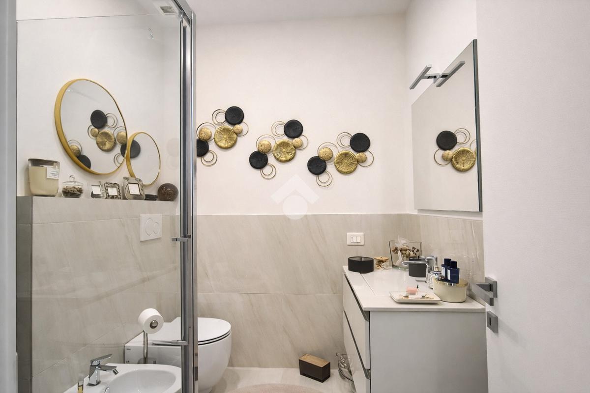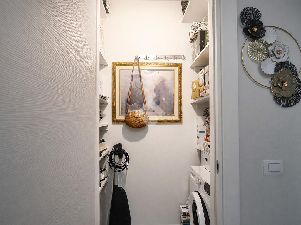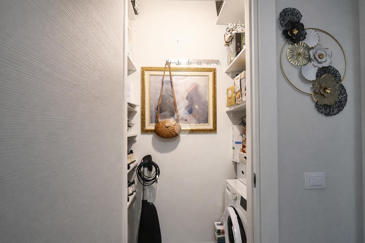 La zona notte è composta da due camere da letto ampie e molto luminose. L’immobile dispone inoltre di due bagni moderni, rifiniti con materiali di qualità, e di un comodo sgabuzzino adibito a spazio di servizio.