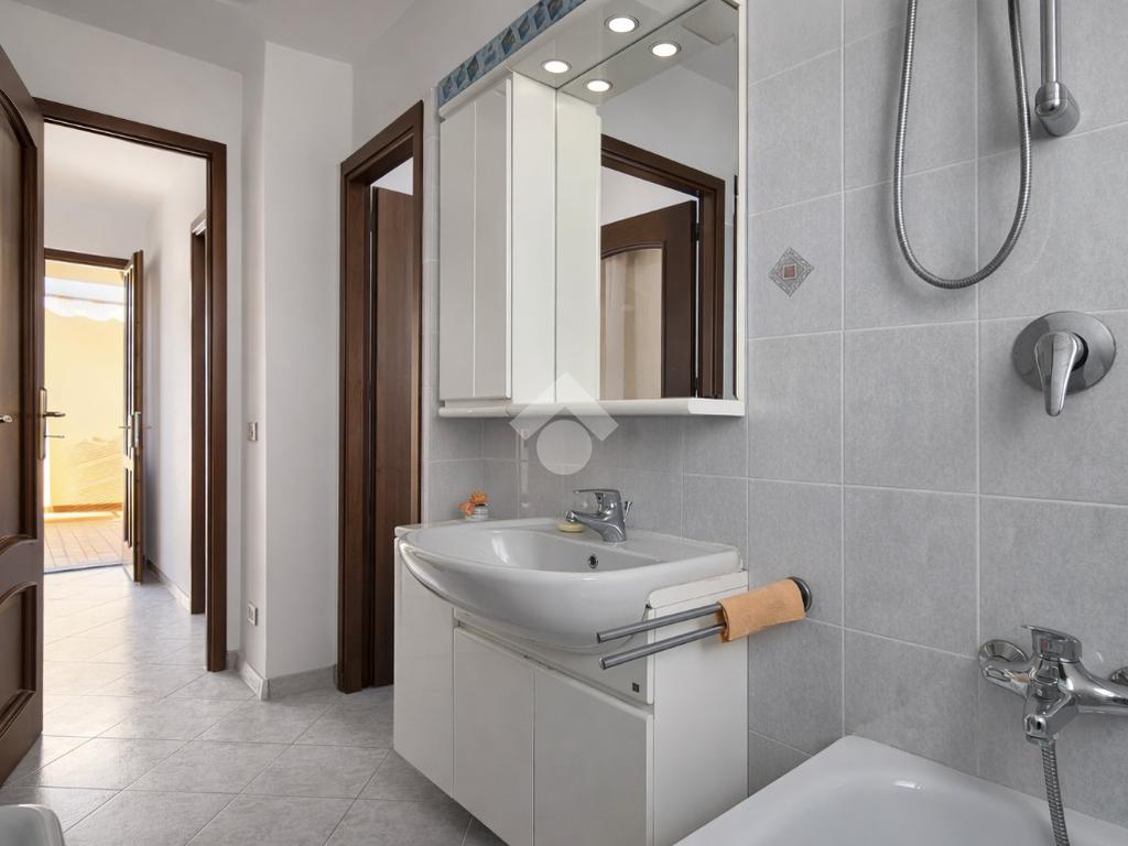 Il piano superiore ospita la zona notte composta da due ampie camere matrimoniali, cabina armadio, secondo bagno completo di doccia e vasca, balcone con accesso diretto al terrazzo, ideale per momenti di relax all’aperto.