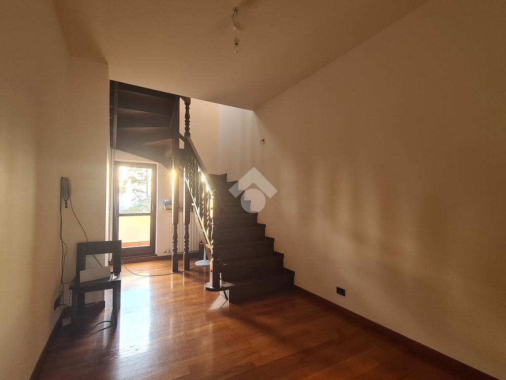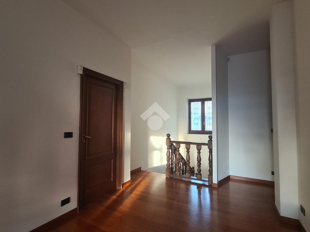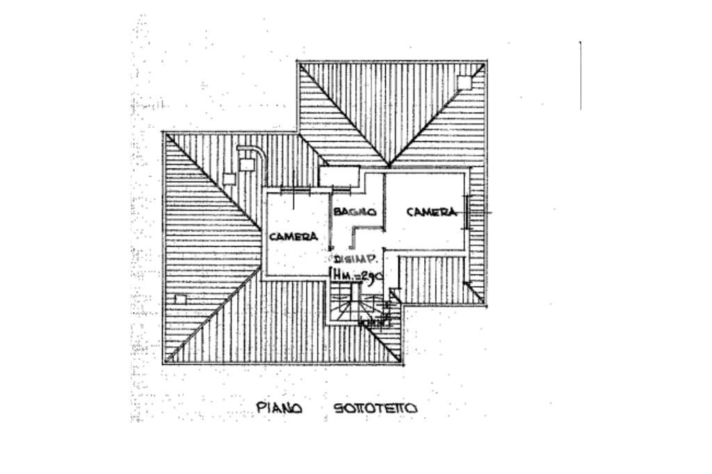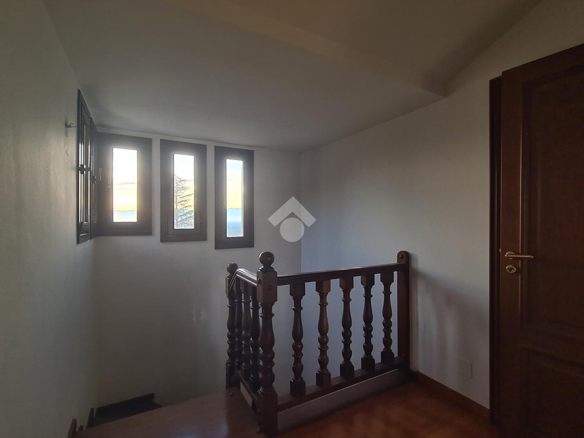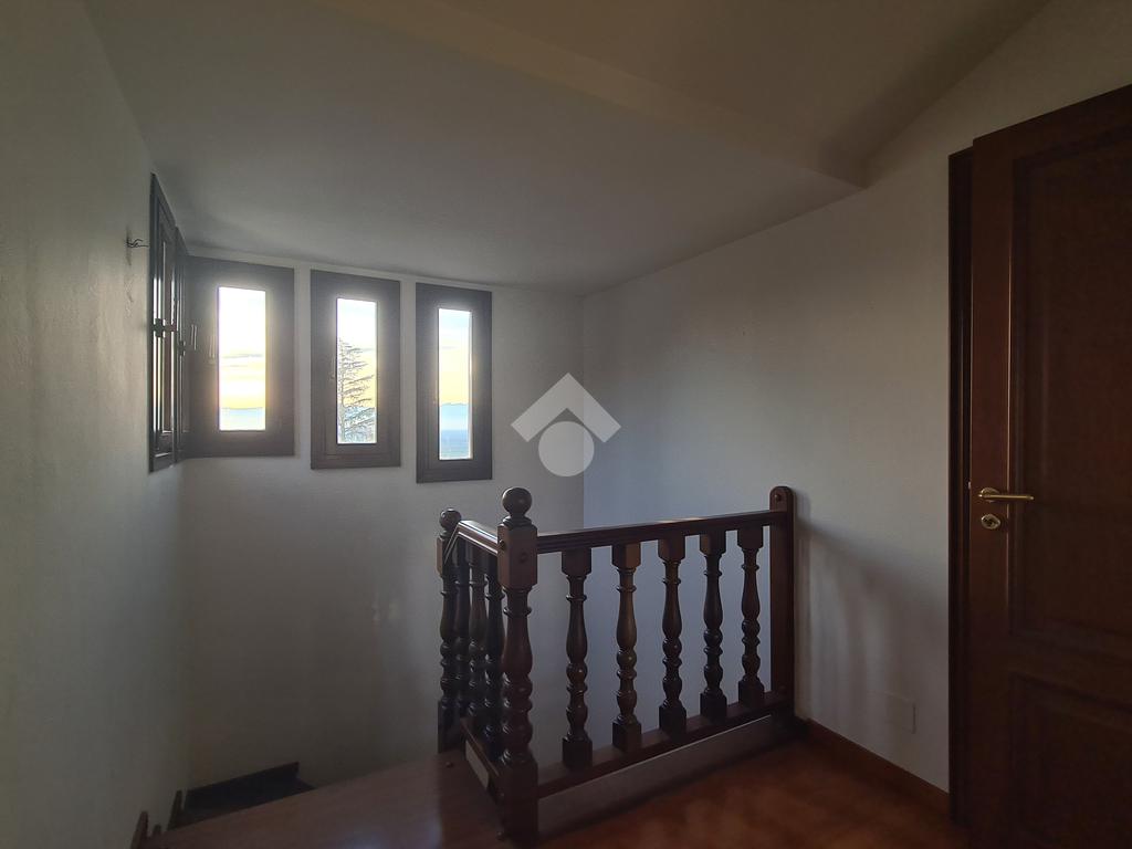 La scala in legno collega i tre piani della villa di cui l’ultimo è mansardato e dotato di due camere ed un bagno.