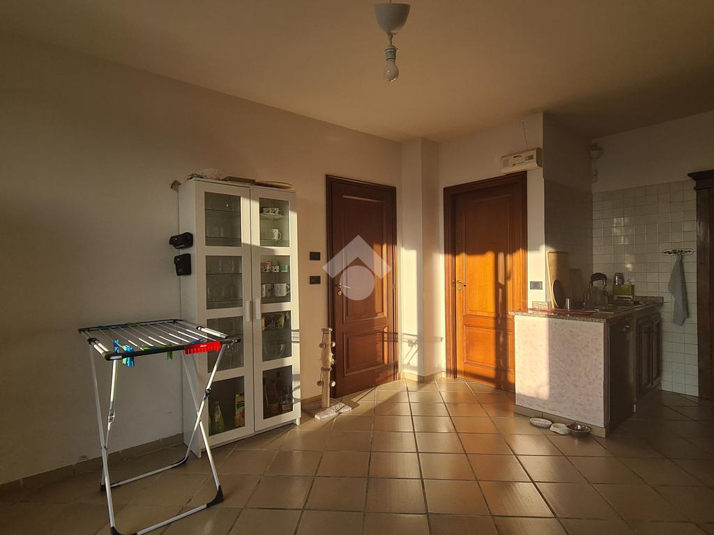 La porta d'ingresso si apre sul luminoso soggiorno che da accesso alla cucina.