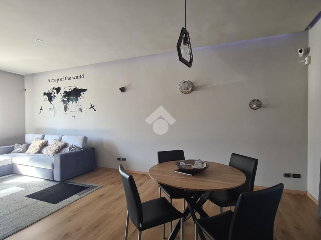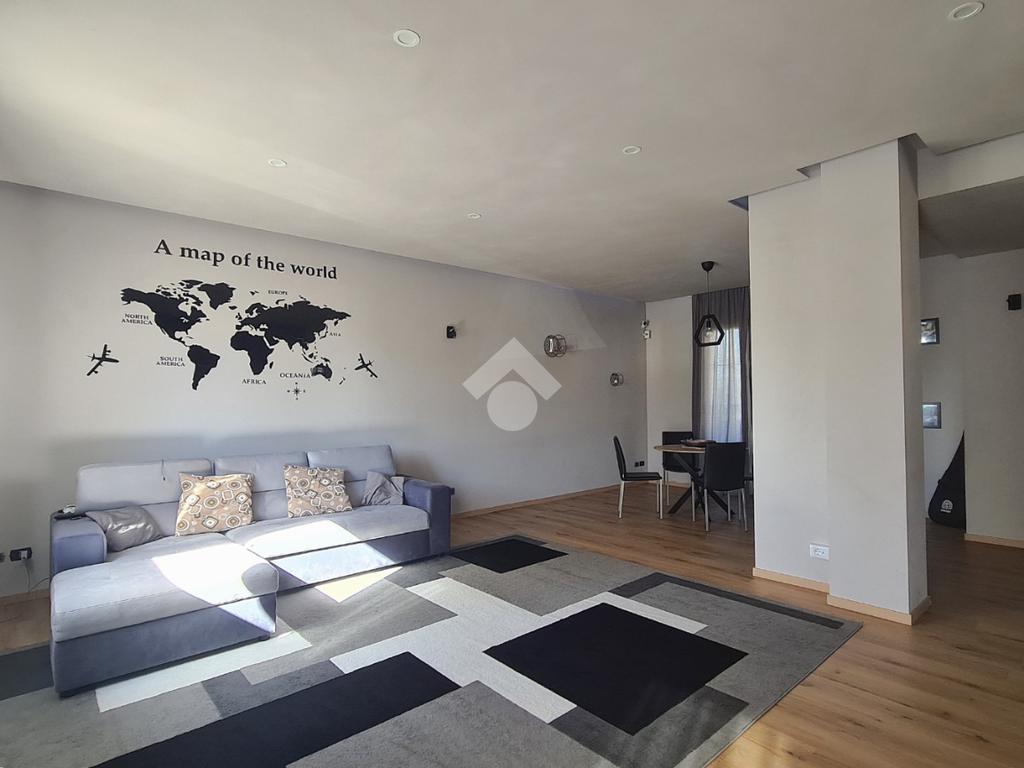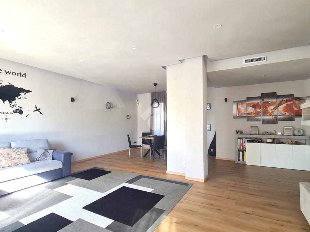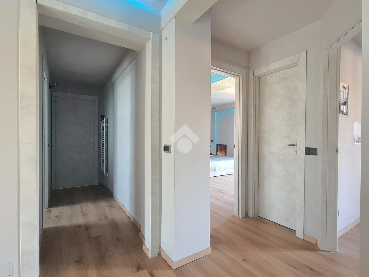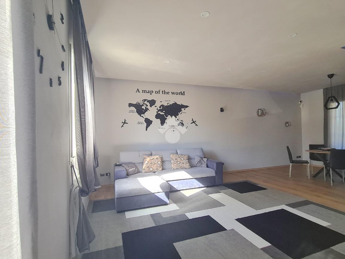 L’ampia zona giorno si distingue per l’elegante controsoffitto in cartongesso con velette, impreziosite da un sistema di illuminazione a LED perimetrale con variazioni di colore, ideale per creare l’atmosfera perfetta in ogni momento della giornata.