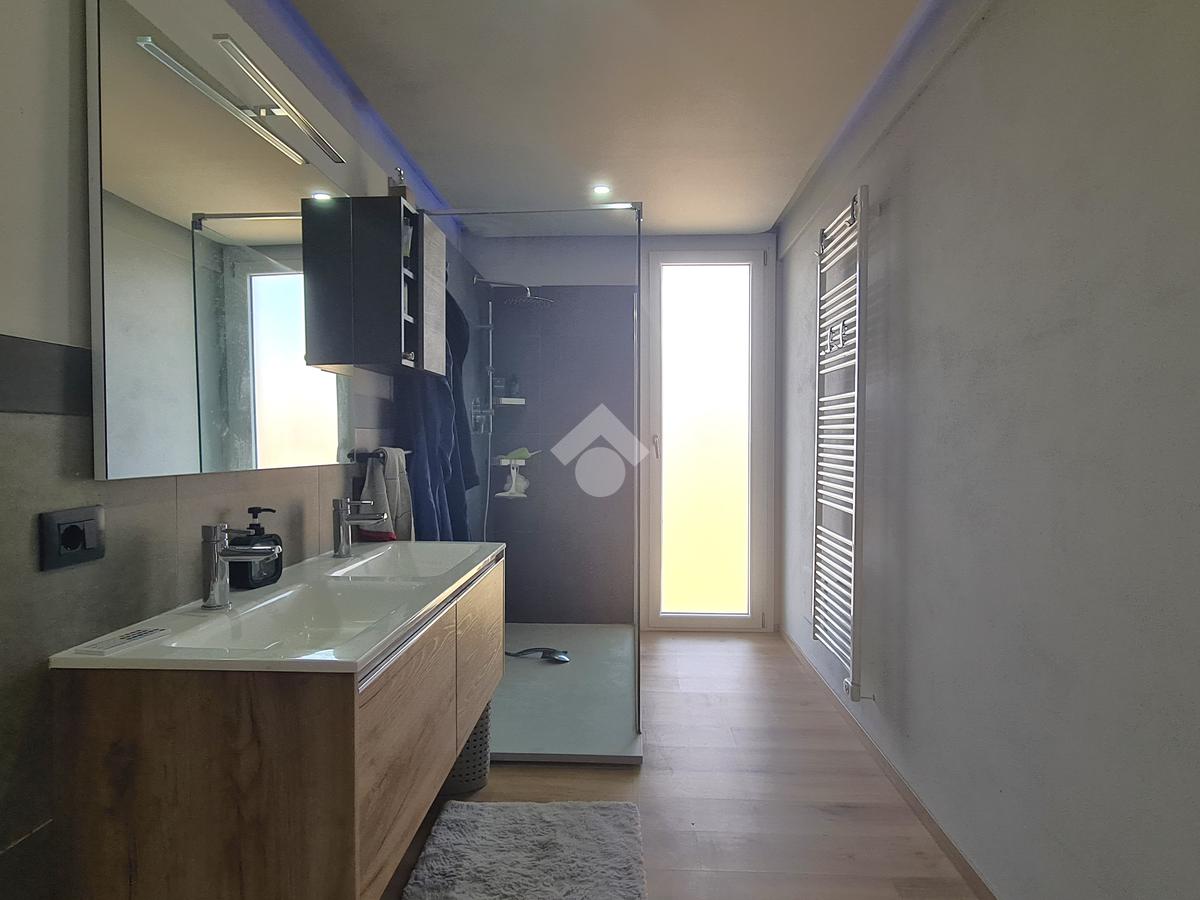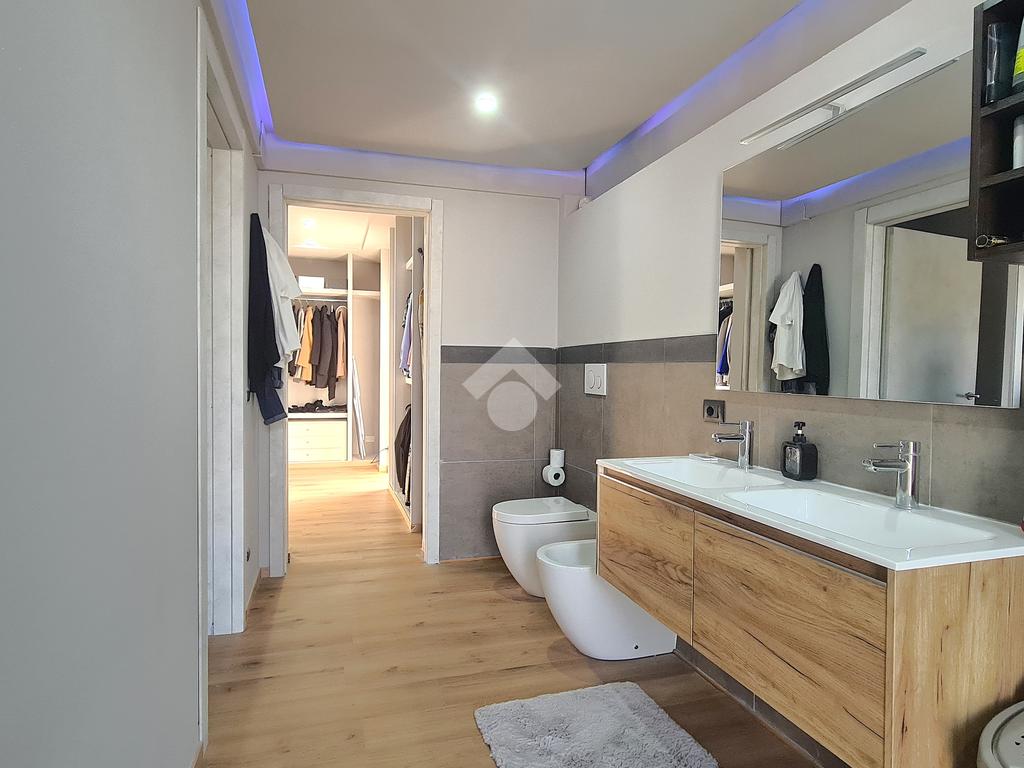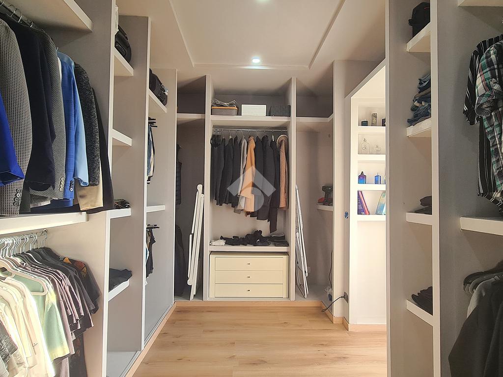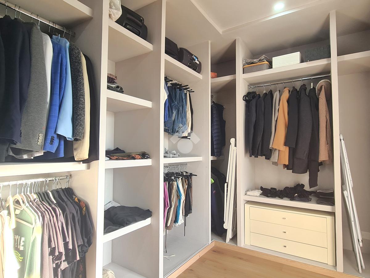 La camera padronale è dotata di un bagno con doppio lavabo e cabina armadio angolare perfetta per organizzare con ordine e stile il guardaroba.